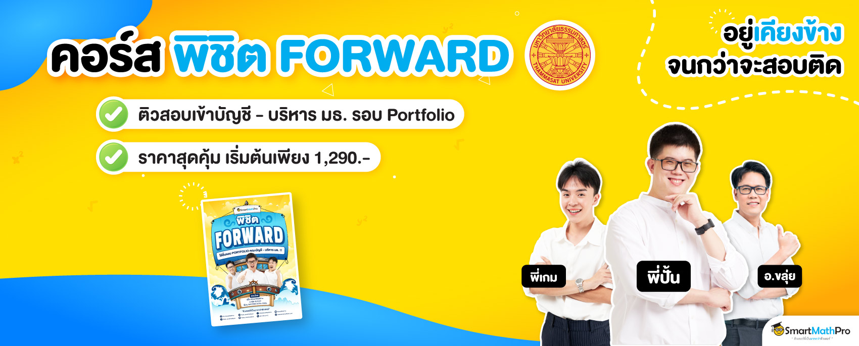 พี่ขอแนะนำ คอร์สพิชิต FORWARD ที่สอนโดยพี่ปั้น, อ.ขลุ่ย และพี่เกมส์ GAT ENG COOL COOL ให้เลยย โดยในคอร์สนี้จะพาลุยพื้นฐานและตะลุยโจทย์สนาม FORWARD ครบทุกพาร์ต โดยเป็นโจทย์ที่พี่ ๆ ติวเตอร์แต่งร่วมกับทีมวิชาการ โดยอิงตามประกาศจากมหาวิทยาลัยธรรมศาสตร์ รวมถึงโจทย์บางส่วนที่มาจากสนามต่าง ๆ และมีแนวใกล้เคียงกับสนามนี้ พร้อมแทรกเทคนิคจัดเต็ม !! ใครสนใจและอยากดูรายละเอียดเพิ่มเติม คลิก ตรงนี้ได้เลยน้าา