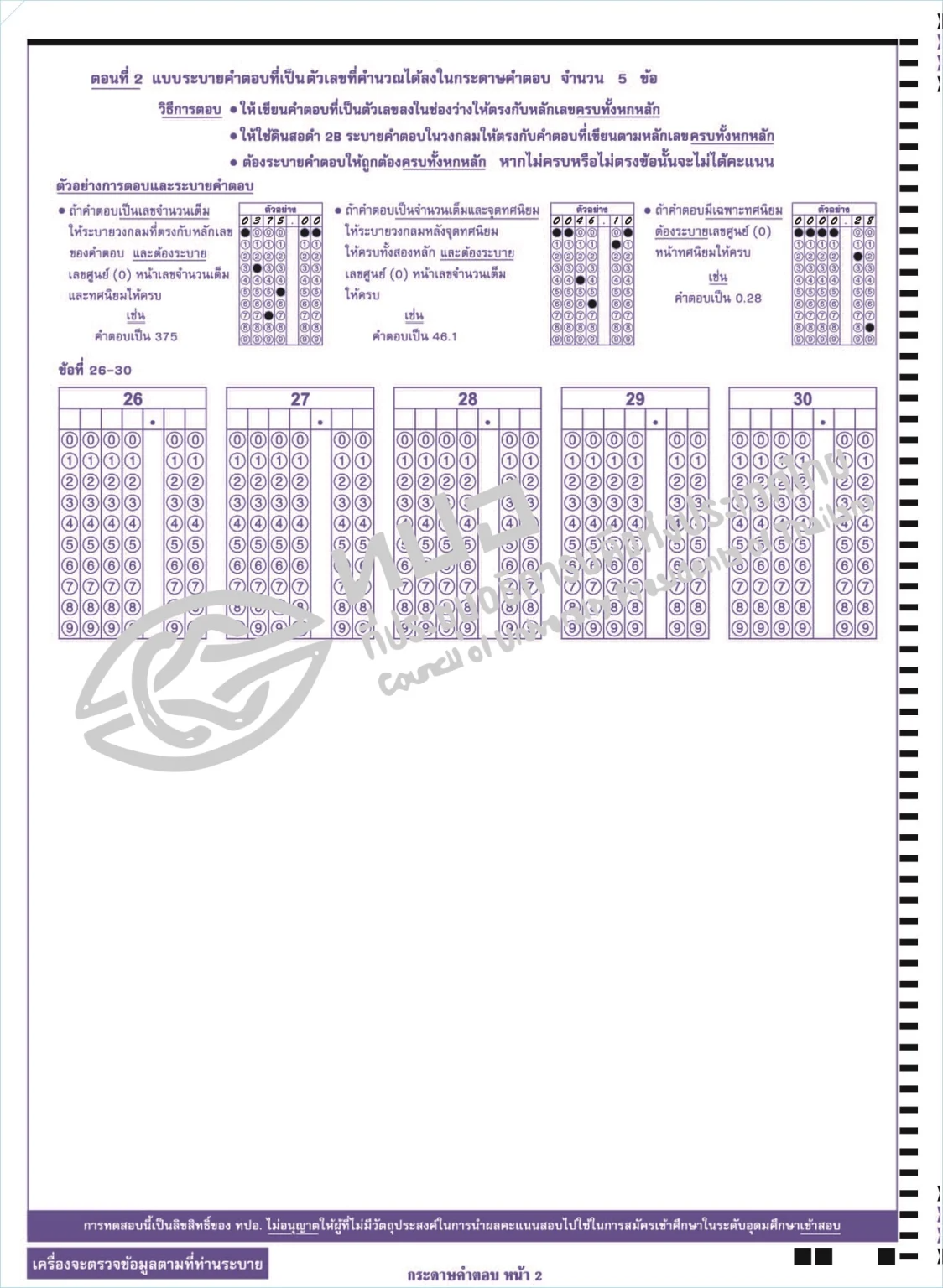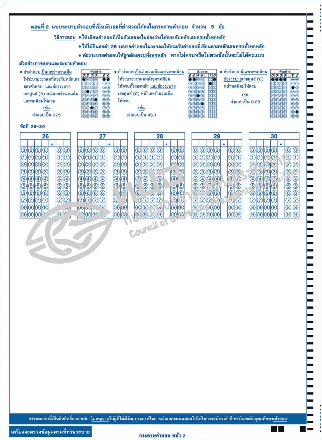 - อย่าขีดเขียดบนแถวบาร์โค้ดรวมถึงแถบสีดำรอบ ๆ ข้อสอบ หรือทำให้กระดาษคำตอบฉีกขาด