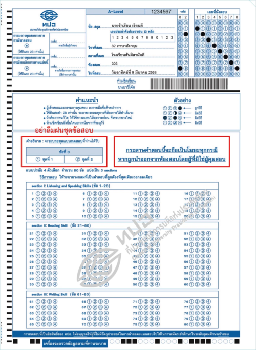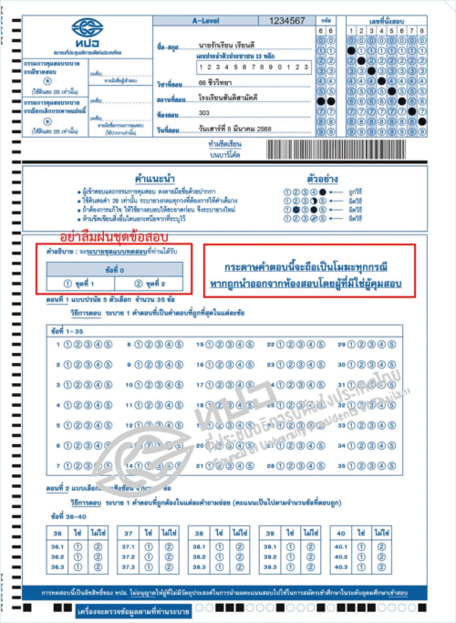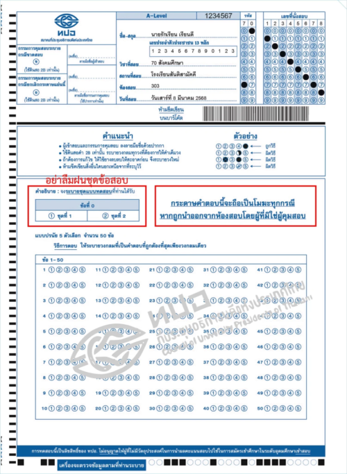 วันนี้พี่ก็เลยเอา ตัวอย่างกระดาษคำตอบ A-Level แบบครบทุกวิชามาให้ดูกัน เพื่อให้ทุกคนได้เห็นว่าหน้าตาของกระดาษคำตอบเป็นอย่างไร ต้องฝนอะไรบ้าง และมีอะไรที่เราต้องระวังให้ดีด้วยน้า ใครอยากรู้แล้ว รีบเล่ือนลงไปดูกันเลยย