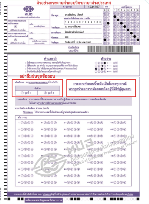 ตัวอย่างกระดาษคำตอบ A-Level ภาษาต่างประเทศ