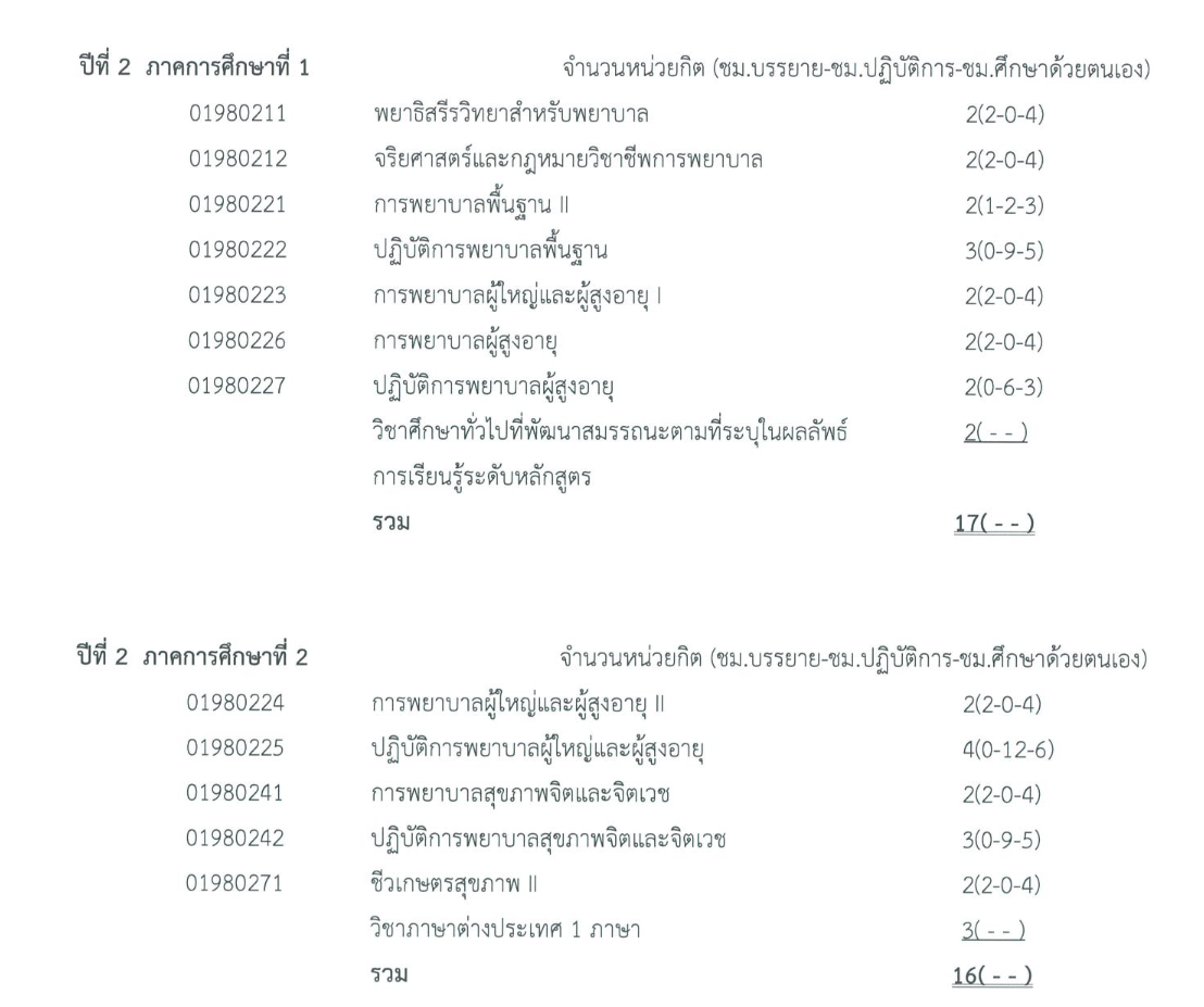 เมื่อขึ้นปี 2 น้อง ๆ จะได้เรียนวิชาต่อเนื่องจากปี 1 เช่น การพยาบาลพื้นฐาน และวิชาของคณะมากขึ้น ซึ่งจะเป็นการพยาบาลต่าง ๆ เช่น การพยาบาลผู้ใหญ่และผู้สูงอายุ, การพยาบาลสุขภาพจิตและจิตเวช