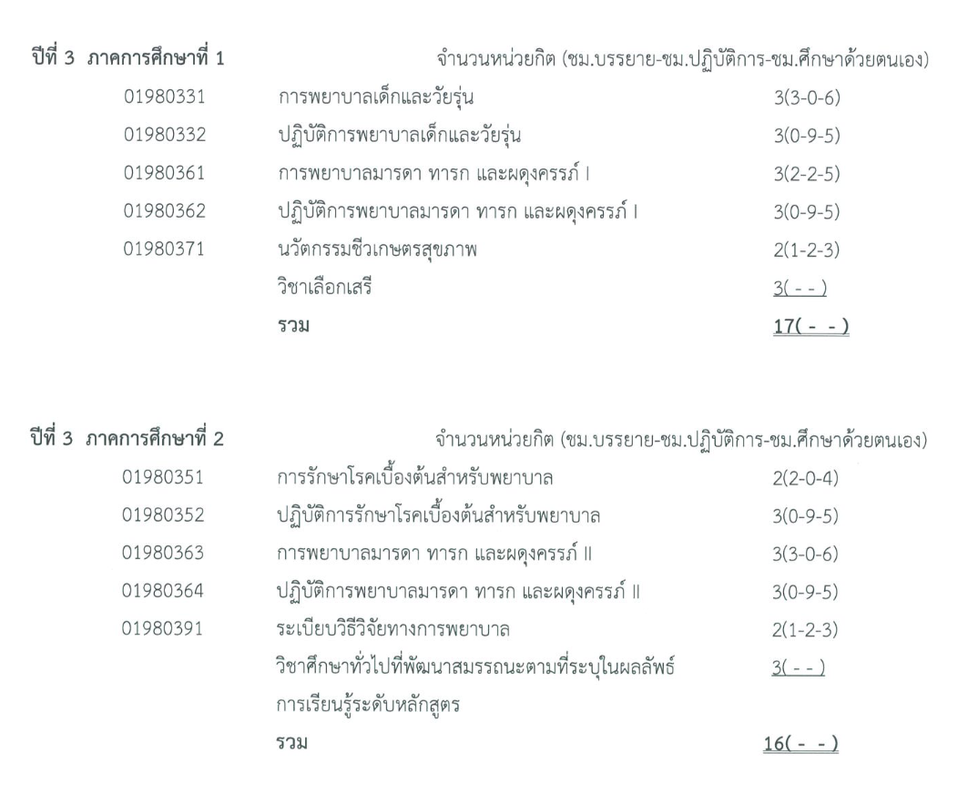 ในชั้นปี 3 น้อง ๆ จะได้เรียนวิชาเฉพาะของคณะพยาบาลศาสตร์มากขึ้น เช่น การรักษาโรคเบื้องต้น, การพยาบาลเด็กและวัยรุ่น, การพยาบาลมารดา ทารก และผดุงครรภ์ เป็นต้น