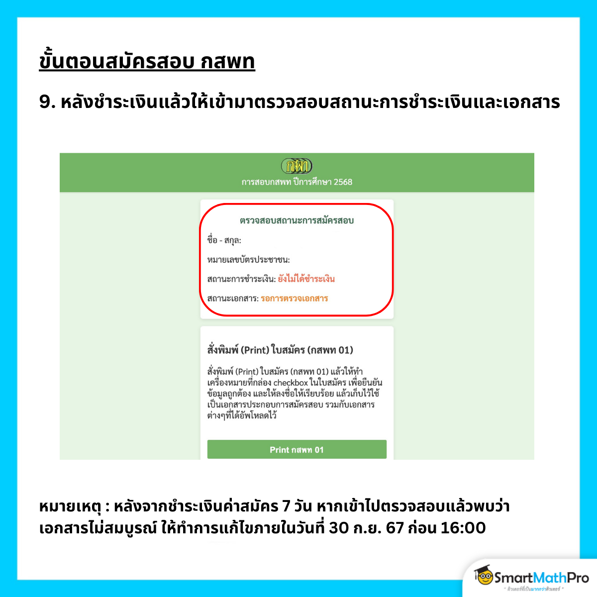 สรุปขั้นตอนพิมพ์บัตรเข้าสอบ กสพท