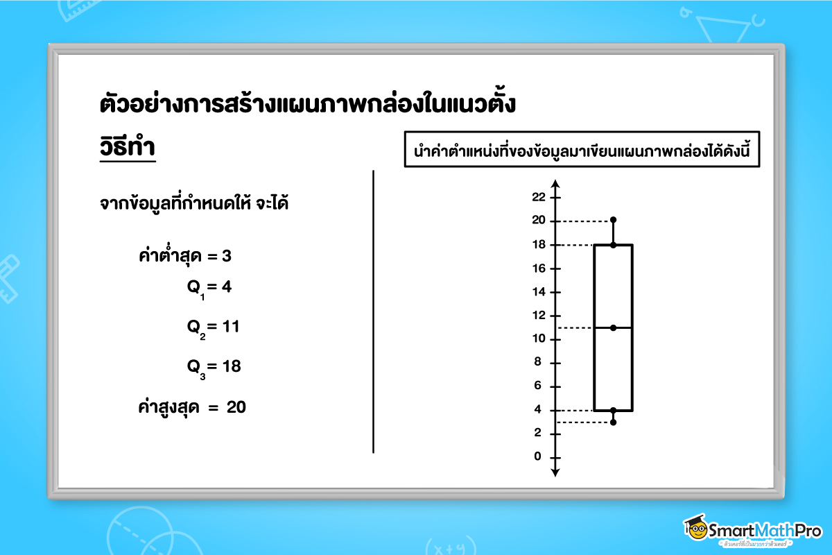 จงสร้างแผนภาพกล่องในแนวตั้ง เมื่อกำหนดข้อมูลให้ดังนี้
