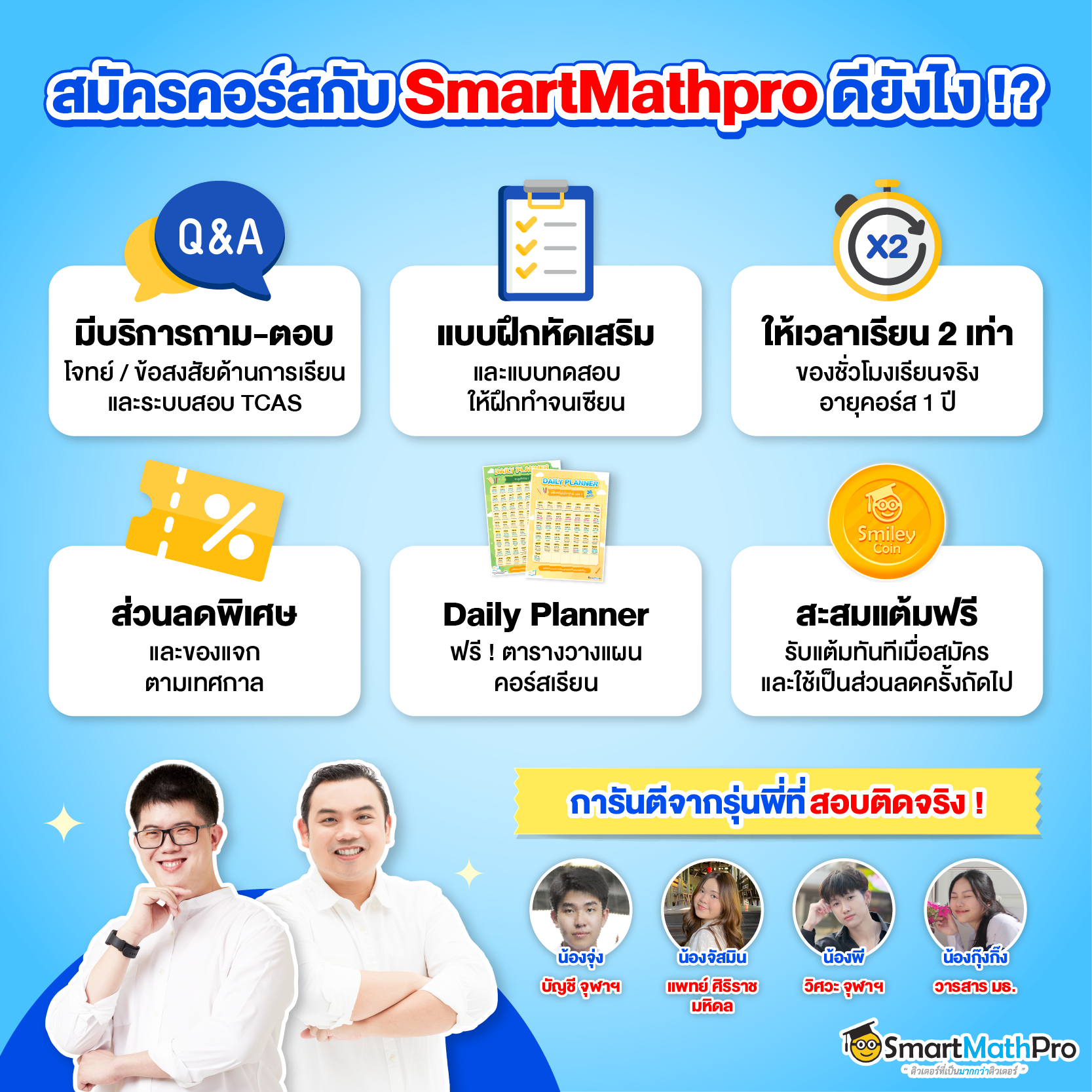 การดูแลและสิทธิพิเศษเฉพาะลูกศิษย์ SmartMathPro