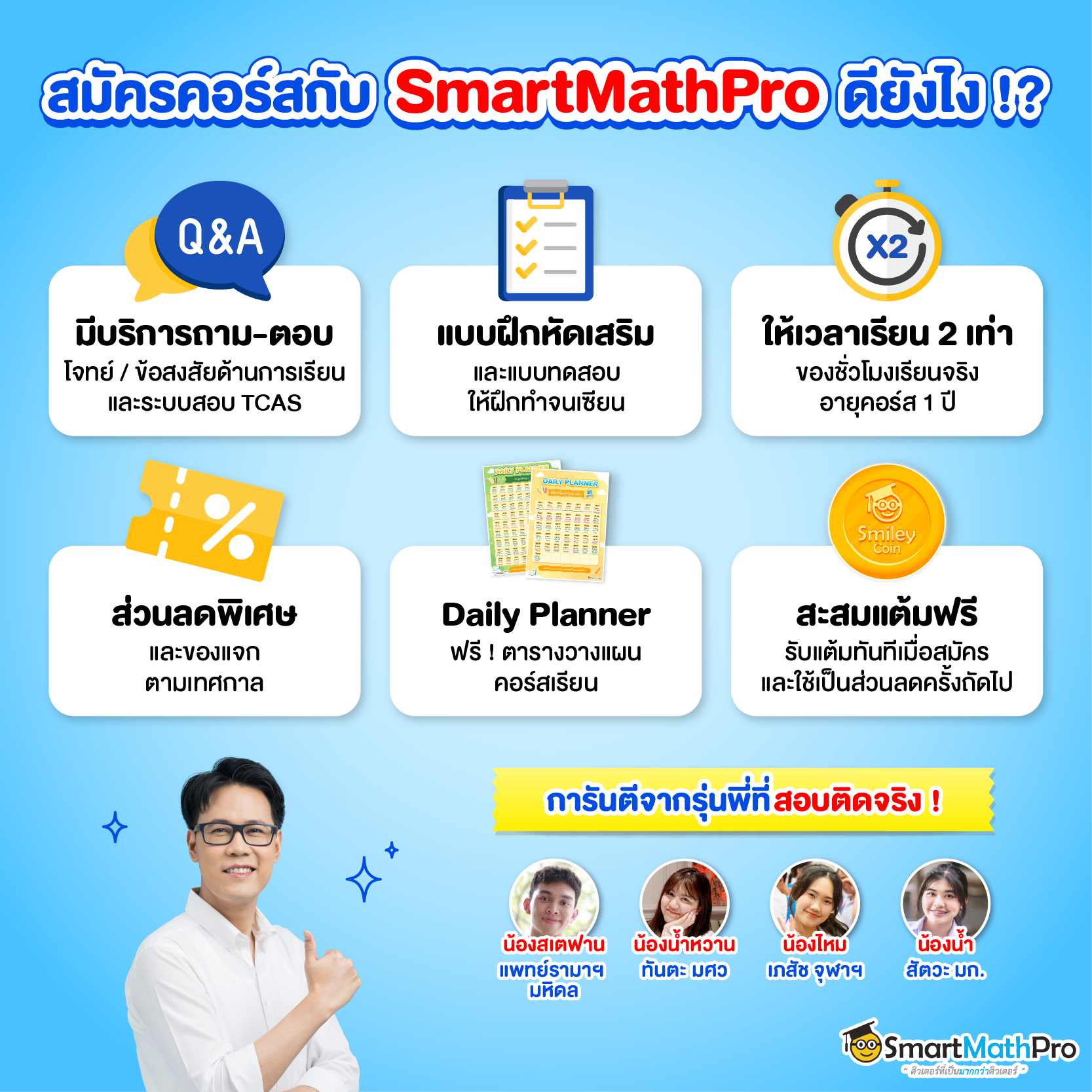 การดูแลและสิทธิพิเศษเฉพาะลูกศิษย์ SmartMathPro